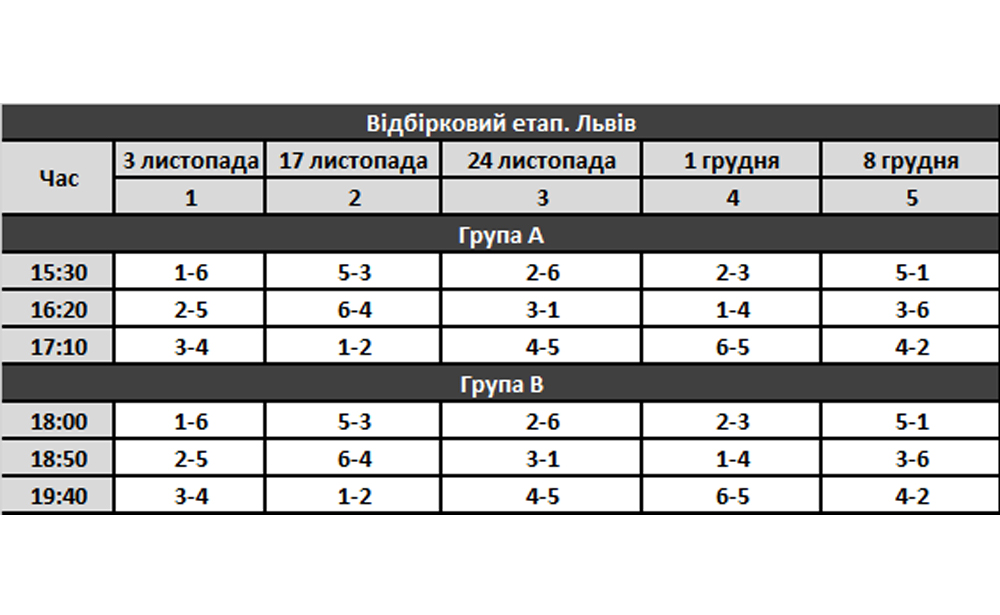 Побажання, щодо коригування часу своїх матчів направляти Юрію Красьохі на вайбер 098 427 71 85. До 15:00 пятниці 1-го листопада.