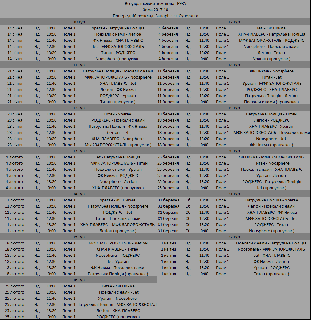 Побажання щодо коригування часу своїх матчів направляти Юрію Красьохі до 18:00 п"ятниці